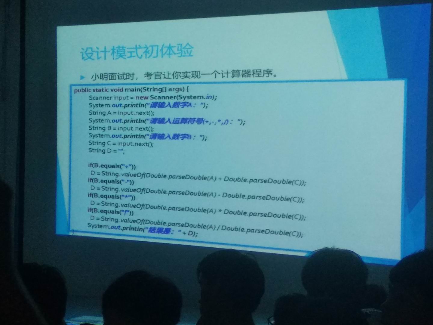 接着郑老师讲了一个计算器的例子,用了4种代码格式演示面向对象语言的4点核心。这4种代码演示一种比一种完善,一种比一种更具安全和方便性。